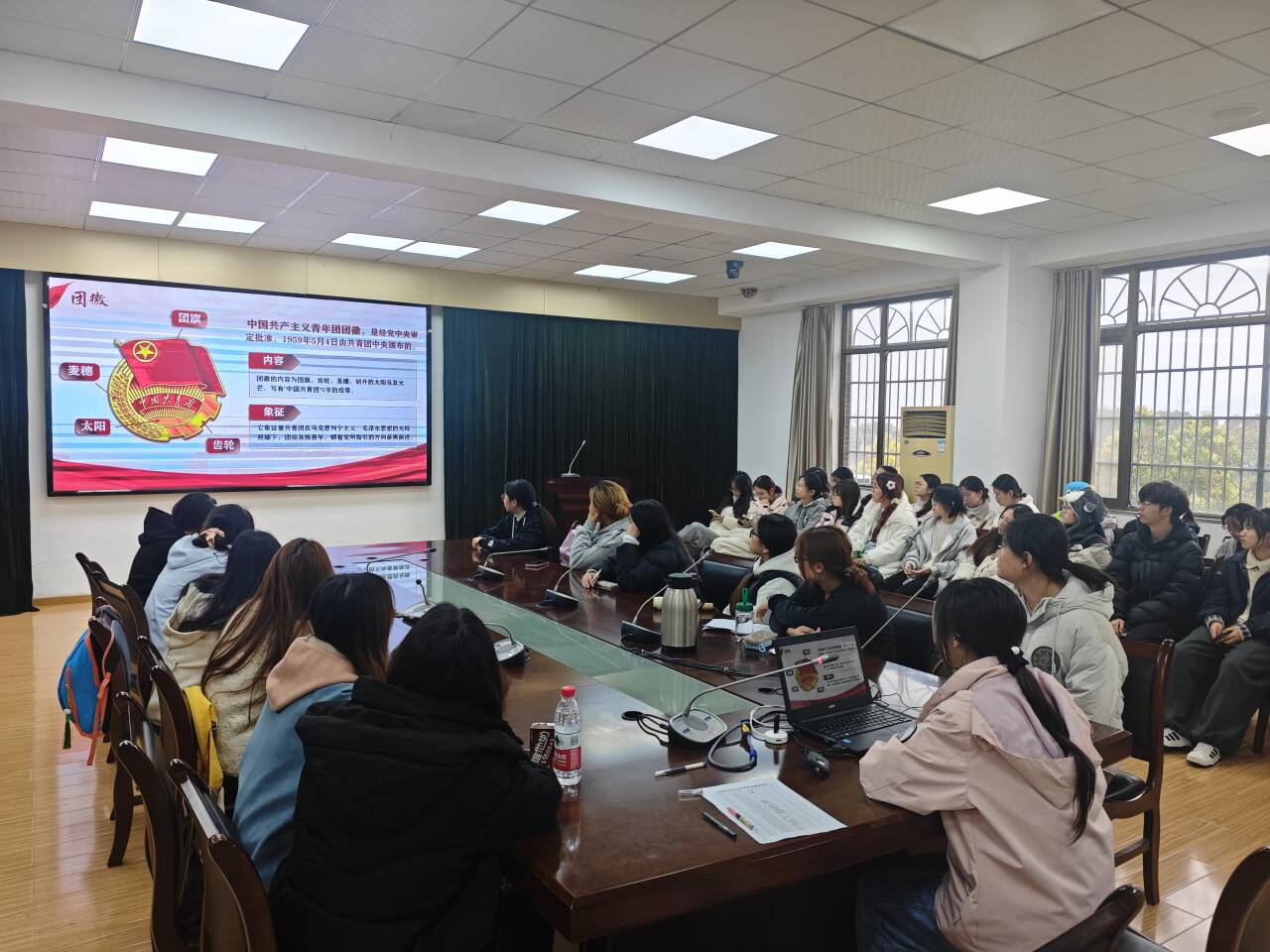 学生副书记袁蝘以“深学团章守初心,青春向党勇争先”为主题,系统回顾共青团百年征程,深入阐释团旗团徽的精神内涵与团员的权利义务,强调团章作为共青团总章程的根本遵循,号召学员牢记初心使命,将团章精神内化于心、外化于行,在专业学习与社会实践中挺膺担当,为强国建设贡献青春智慧。