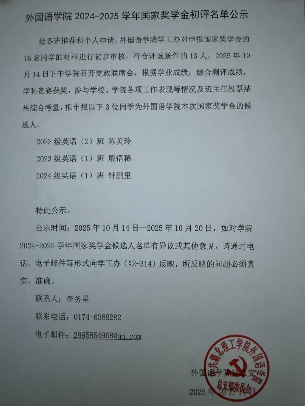 英国正版365首页2024-2025学年国家奖学金初评名单公示