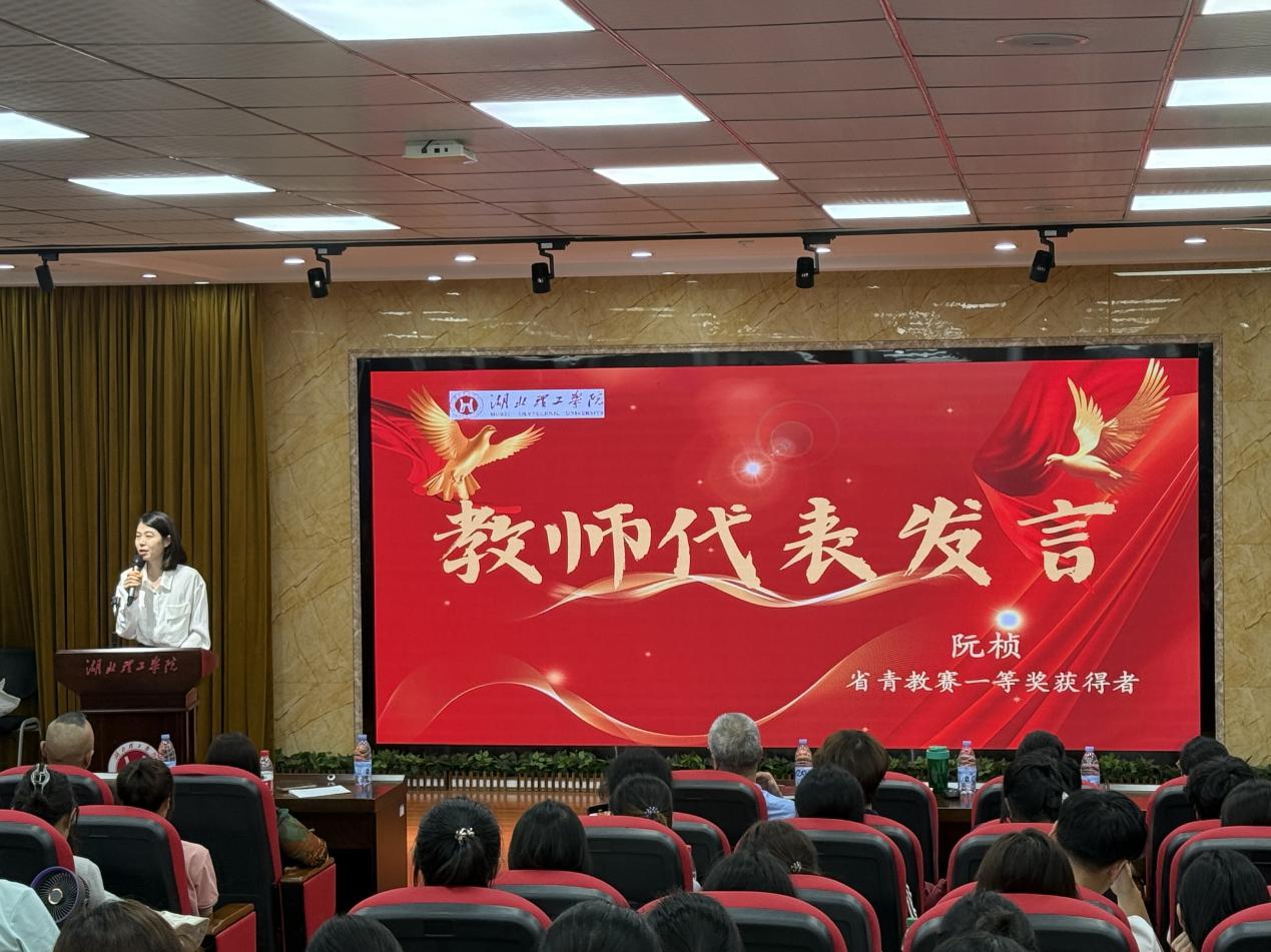 学院教师代表阮桢,作为湖北省青教赛一等奖的获得者,以“走出舒适圈”作为勉励,搭配上流利英语展现的深厚专业素养,为新生们树立了榜样。班主任代表毕猎凯博士深情寄语,鼓励同学们要把握当下,珍视大学时光,善用资源、努力成长,莫负韶华。