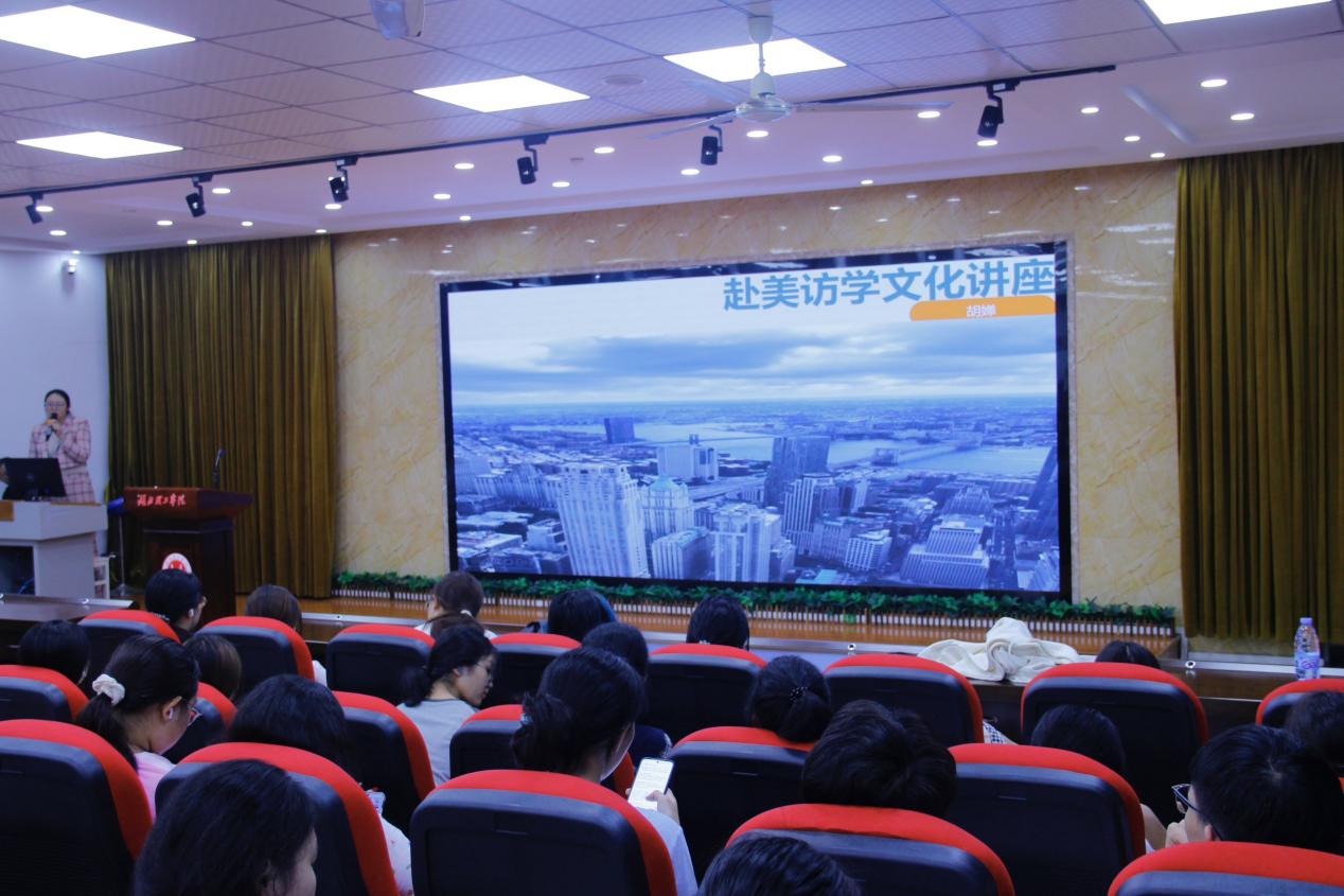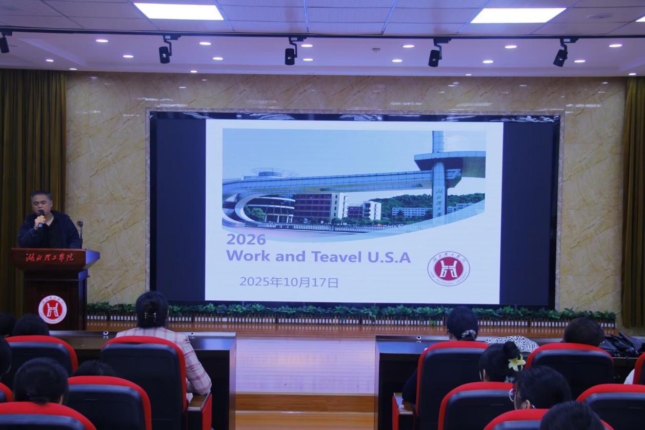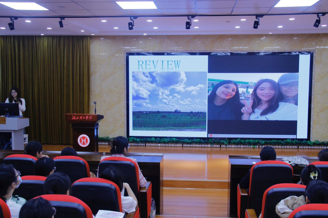 本网消息 为强化学院学生英语实践运用能力,10月17日下午,英国正版365首页于X2-113室举办“2025年暑期赴美带薪实习报告会”,会议由教研室主任莫代春老师主持,学院党总支书记占赢、副书记易定国出席,访学教师胡婵和赴美实习的两位优秀学生代表进行分享交流,全院150余名学生参会。