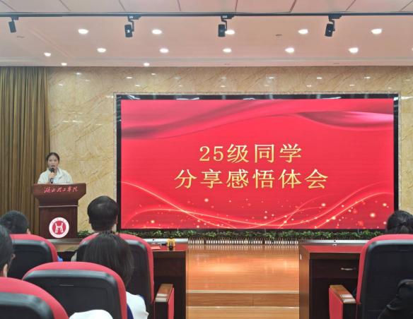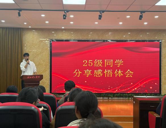 2025级学生代表分享感悟体会,表示本次活动让他们深受启发,今后要以优秀的学长学姐为标杆,科学规划大学生涯,以梦想为帆,砥砺前行。