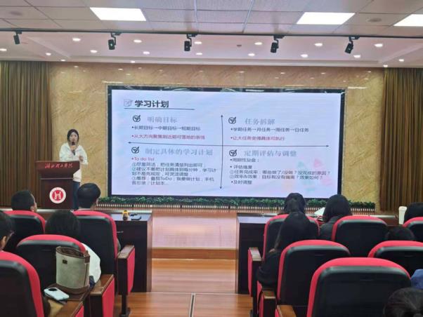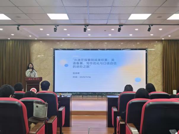 分享会上,国家奖学金获得者陈美玲同学结合自身学习经历,从学习规划、学习方法以及压力应对几个方面为同学们进行精彩分享,殷语希同学则聚焦英语专业备赛、写作优化与口语提升几个方面为大家提供了切实可行的操作路径。