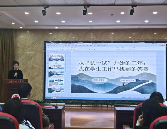 学生干部代表钟蔚怡通过展示自己三年的工作历程,让同学们看到了她近几年来的成长与收获,同时,也让我们看到了一名优秀学生干部的责任与担当。刘彩丹从心理健康工作者视角出发,讲述帮助就业焦虑的同学走出阴霾、自己也在服务中治愈焦虑的双向成长故事,让大家感受到助人与自助的温暖力量。