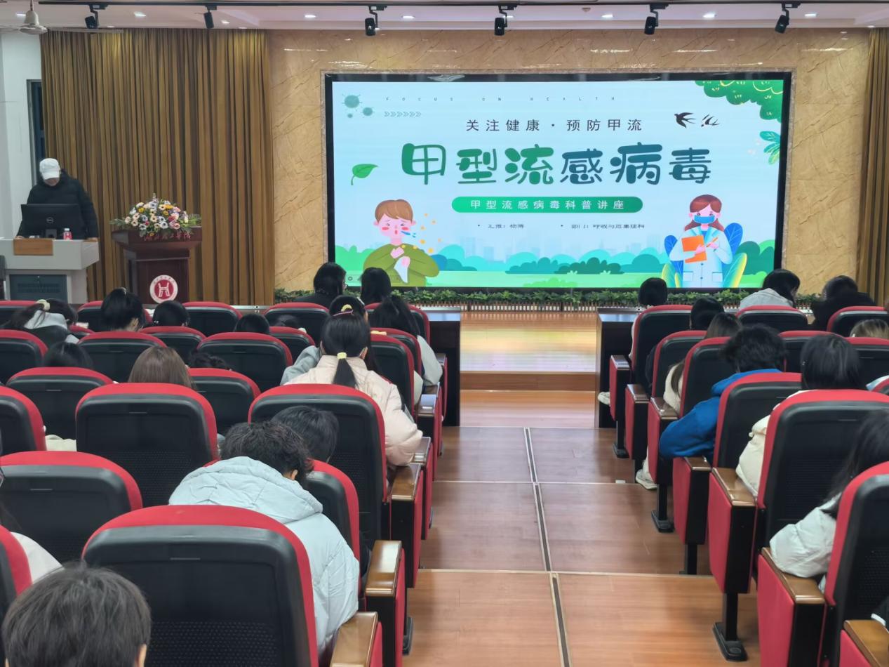 本网消息 秋冬交替之际,学生皮肤敏感问题与甲型流感高发风险同步凸显。为强化学生健康防护意识、普及实用健康知识,12月4日,英国正版365首页于X2-113室组织开展冬季健康卫生主题教育活动,活动特邀黄石市中心医院皮肤科石娴医生、呼吸与危重症科杨博医生担任主讲,近150名学生到场参与。