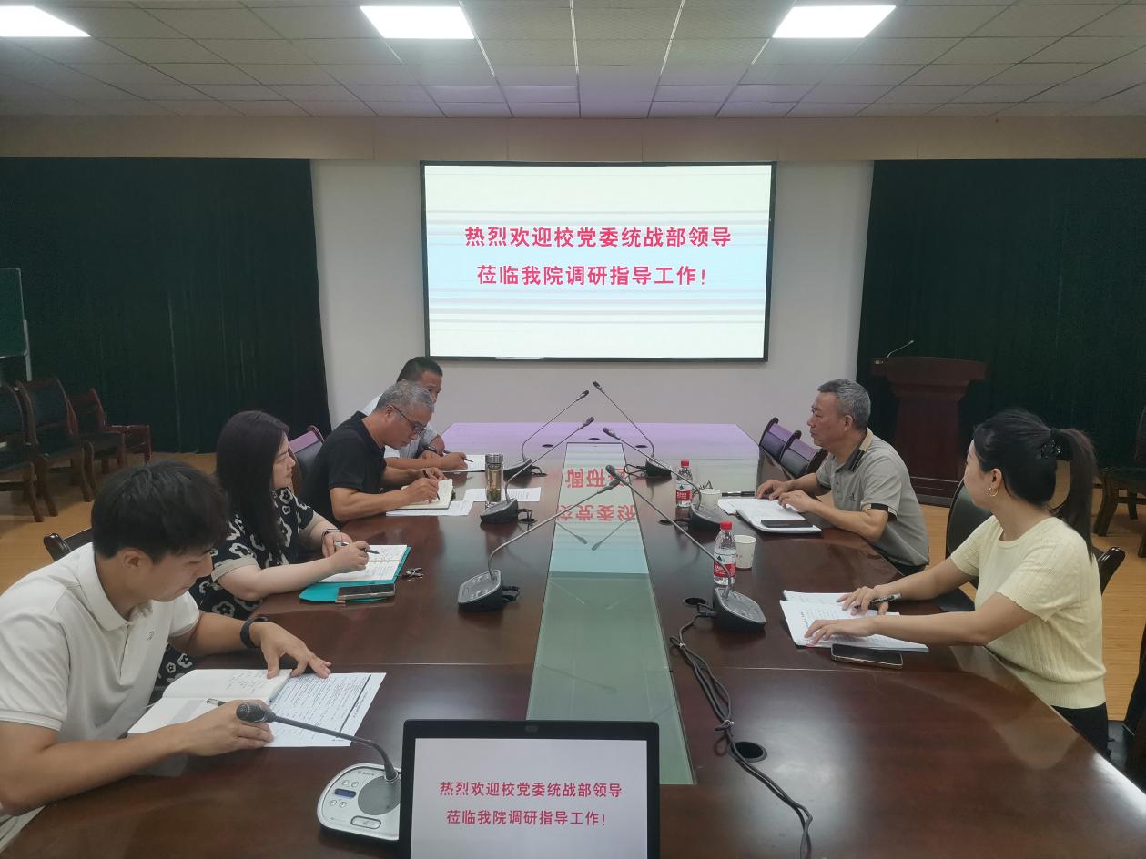 本网消息 9月9日下午,校党委统战部常务副部长袁斌一行莅临英国正版365首页,调研学院统战工作开展情况。学院党总支书记占赢、统战委员张健、党总支副书记易定国及统战工作联络员等参加调研座谈会。